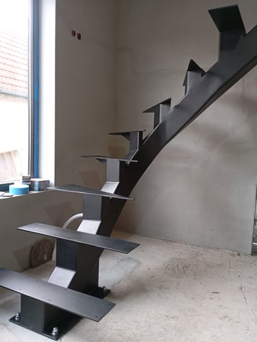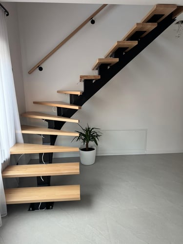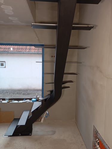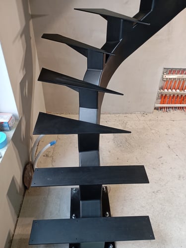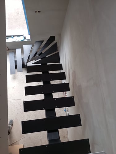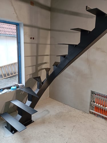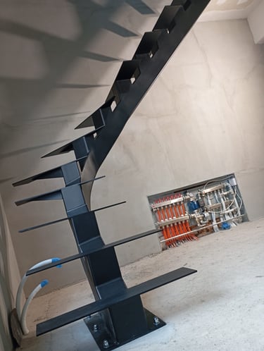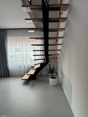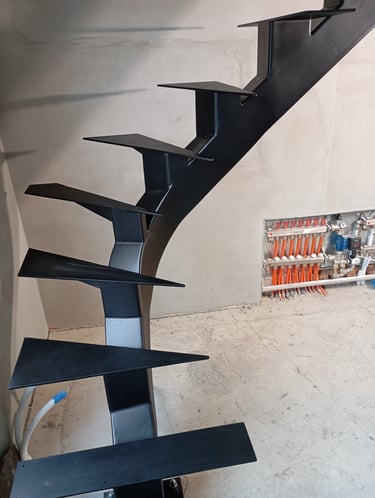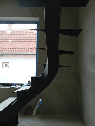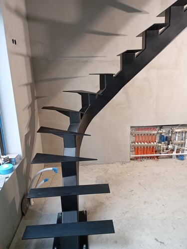 Special requirements can only be met with special solutions. This is how this spectacular spiral staircase was created. It successfully fulfilled both the spatial constraints and the client’s needs entirely.The "spine" of the staircase is made of a 150x150 mm closed steel profile, and the walking line ensures comfortable movement throughout. The steps will later be covered with wooden cladding.