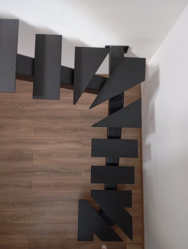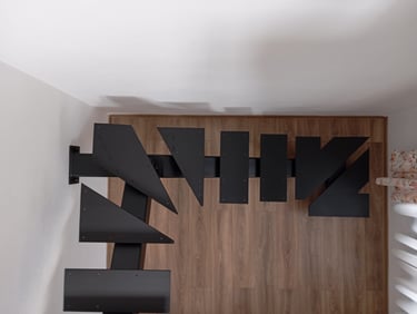 Thanks to the well-planned floor cutout, we were able to create a spacious and comfortable walking surface. The staircase consists of two main elements, joined with matching fasteners for a clean and cohesive look.