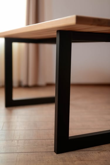 EN: Dining table made of hardwood, with an ash top, powder-coated, dimensions: 180x90x76